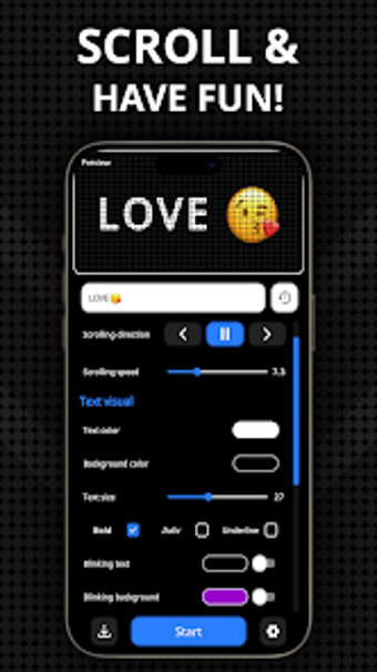 De LED Banner - LED Scroller is een veelzijdige applicatie voor Android die je telefoon transformeert in een dynamische LED-display. Deze gratis app stelt gebruikers in staat om tekst te laten scrollen en aan te passen op een manier die de aandacht trekt. Belangrijke functies zijn onder andere ondersteuning voor emoji's, aanpasbare tekst- en achtergrondkleuren, en de mogelijkheid om GIF's van de scrollende tekst te delen of te downloaden. Daarnaast kunnen gebruikers de scrollsnelheid, richting, en zelfs de knipperfrequentie van de tekst aanpassen.